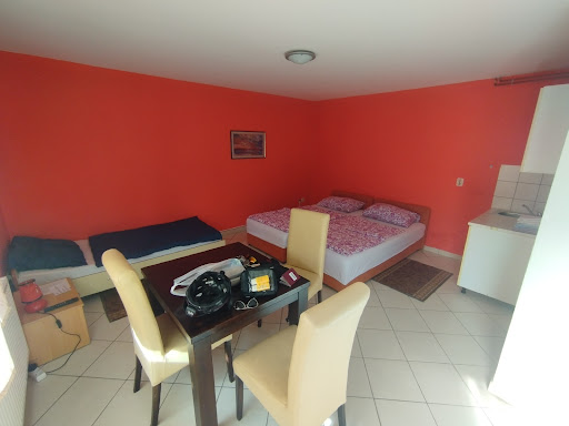 Vrata kupaone se nisu mogla zatvoriti, što je bio problem s obzirom da smo bili miješanih spolova u app. Pipa na lavabou se klimala, tuš kabina je toliko stara i izraubana da je izgledala prljavo, vrat tuš kabine napola razvaljena. Kuhinjica je imala sudoper i to je bilo uglavnom to jer su elementi bili prazni. Dvije šalice i dvije čaše na troje ljudi, bez ikakvog pribora za jelo, kuhala i sl. Frižider smo mogli samo sanjati, tako da smo jogurte, salamu i sl. morali odmah pojesti jer ih nismo imali kamo pohraniti. Kruh se nema s čime narezati jer nema noževa ni daske. Zamolili smo kuhalo za vodu da si bar jutarnju kavu smućkamo i dodatnu šalicu i to smo dobili, ali smatramo da bi takve stvari u app trebale biti pod normalno. Kreveti tvrdi i neudobni. Ne preporučujemo jer ne vrijedi novce koje...