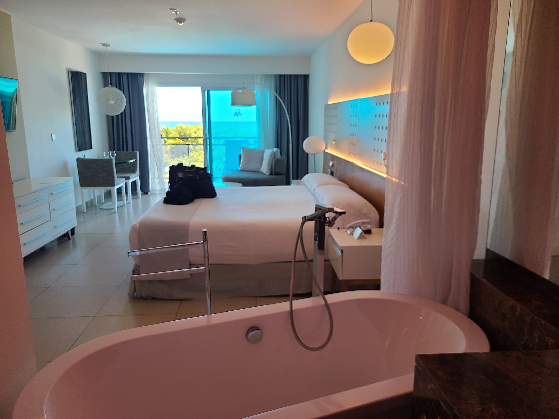 Our room had a beautiful and ultra modern design, and everything worked well. It was large and well laid out, the bed was comfortable, the 2 person shower was very horny and the view of the ocean was amazing. The toilet (with a very powerful handheld bidet) is in its own water closet room and the rest of the room is open concept.