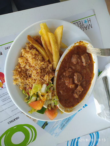 We have HB. The food is OK, some portions are big some are not, so you can ask a waiter about the size and they can recommend; additional portion is extra charged. All the drinks for dinner are for money which is not cheap and you even aren't allowed to drink your own ones. Breakfast is always the same and dinner is different. It can be rice with chicken or beef, chips with chicken, spaghetti, fish chips. Salad is included in some dishes.