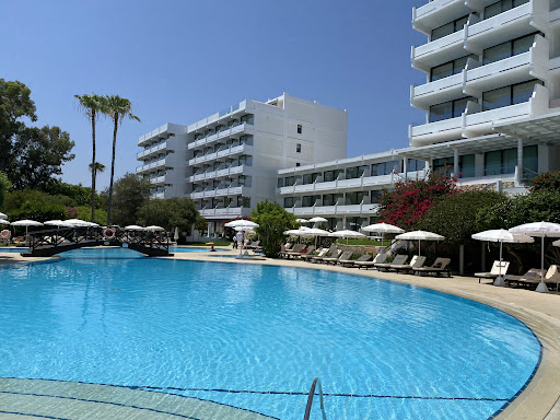 Read moreWe have just returned from our family break and couldn't be happier with our experience (our 2nd time here). ||The hotel entrance area and bar areas feel lovely. Yes the family room was tired with some loose fittings, but was in no way offensive (more on this below), it was very roomy and squeaky clean, and kept extremely clean for the duration of our stay!||The staff around the hotel are incredible - they constantly asked us how we are with a smile, and the cleaners knocked every afternoon to check if we needed new towels, and gave the girls lots of complimentary chocolates which they loved! ||The breakfast was lovely - the food quality in general was very high comparably to other hotels we have stayed (including proper coffee!), there was something for everyone. It's probably the busiest time of the year for the hotel so of course it was not quiet - 9:30am probably being its peak, but we always found a table to sit with our 2 girls and never left feeling disappointed. I've had much worse experiences elsewhere!! I feel they cope well with peak season - personally. ||The pool area and sunbeds were perfect, especially as you reserve your sunbeds for the duration of your stay. There were some instances of newbies coming along and dumping their towels on our pre-booked beds, but the pool attendants were soon on the case and it never became an issue. The pool area itself is very nice with lots of garden areas, and a superb beach.||We ate at the hotel on 2 evenings - a special greek night near the pool and at the fish restaurant. The food was OK, however we felt it was overpriced (with 2 girls around 134 euros excluding drinks) - for this price you expect something spectacular or for it to include drinks, so we didn't feel it was worth it even with some additional entertainment thrown in. The greek night pool seating was also very squashed together and felt crowded. No need to eat at the hotel - there are plenty of options around where you can eat with a family for 60-70 euros or less, for example there is a lovely Tavern and Italian restaurant just to the front of the hotel which we mainly used. Bed and Breakfast is the best option at this hotel in our opinion - save your money!||The bars in the hotel are pricey but you are also paying for bar attendant service on this so it is kind of justified? 10-11 euros per cocktail and 7 euros for a beer. They deliver your drinks directly to your sunbeds via ordering from the barcode. ||During peak season there is a kids club which was brilliant for our 2 girls - they spent a lot of time in there and were very happy. It tends to run between 9-6pm most days apart from Mondays.||It's a quiet, peaceful hotel with only laid-back entertainment in the Cork Bar in the evenings (such as pianists and vocals). It's not a party hotel, but it doesn't advertise itself that way. That's why we like it! It's so relaxing. If you want a loud party style hotel then there are plenty of other local options. ||On the final day we moved to another room for the day (additional charge applies) as our flight was in the evening - it was newly refurbished and was superb. The walk in shower and bathroom especially! It felt very high quality. The hotel must be gradually refurbishing their rooms? Which is good news and explains why some of the rooms feel a bit tired. ||We will...
