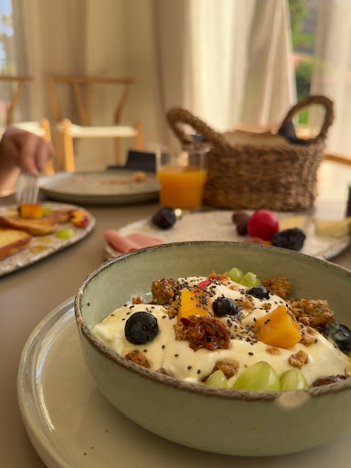 Wow 🤩 where do I start? If you can, book the Executive Suite! It is luxury personified with everything you need and expect from a top class hotel yet in a cosy boutique environment, a stunning fusion of traditional and contemporary furnishings to ensure you feel totally relaxed from start to finish of your stay. However, every room offers the same attention to detail to delight and enable you to have a relaxing break. I could write a list of features but just to say investigate every corner of your room and the hotel for historic books, magazines and fabulous wall hangings and furnishings that make this place so individual and interesting. Engaging the family in the design of the rooms is unbelievable, the sinks, baths, storage and counter tops etc all made on site and built with unusual concrete and stone materials to give a funky and minimalistic ambience to the rooms. We felt so relaxed as soon as we entered the suite with its wrap around balcony, huge amazingly comfortable bed with massive pillows and cushions to swallow you up that we had to drag ourselves out of the hotel to visit the beautiful surroundings! Back to our room, the mini bar and fridge was more like an up town cocktail bar with bottles of top quality liqueurs and plenty of individual cocktails for any discerning mixologist! A complimentary bottle of Thymises Red Wine awaited with bowl of fruit and water on our arrival along with the top Nespresso Machine, Kettle and funky Expresso cups with accompaniments to enjoy the facilities. Bin, what bin? Here it is an earthen pot! I told you! Everything has been meticulously ethically designed! Did someone say Power Shower?! I was elevated to a wonderful waterfall explosion to complement the up market shower gel and soaps! The bath in the Executive Suite was a revelation, I would still be in it now given the option! Dual sinks, robes, slippers and plentiful towels were well received! The room was furnished with sofa, chairs, cushions and a large TV with loads of channels to chill and enjoy some downtime too. Now, don’t worry I’m into food next!Breakfast was a feast starting with a platter of fresh fruit, hams, cheeses, olives and eggs accompanied by lots of different croissants and breads. Coffee from a state of the art machine and choice of teas too. But… as if there’s not enough to fill you up you can then choose from a number of cooked options. My husband went for a mixed omelette which was amazing and I’m disappointed as I have always been the omelette queen in our house but I’ve been knocked off my pedestal! I cannot finish off the review without talking about our evening meal which was definitely a totally amazing experience. We shared two starters, a Cretan Dakos Salad and Orzotto with roasted leg of pork and they were simply the best starters we have had for a long time. How do you follow that? Well believe it or not we both said our main courses were top notch and the chef was obviously very skilled to deliver a Rib Eye steak cooked to perfection and Pork Belly so tender I will be dreaming of it tonight! I expect you are thinking really??? Can everything be that good? Well I’m telling you it was! Absolutely amazing and we will...