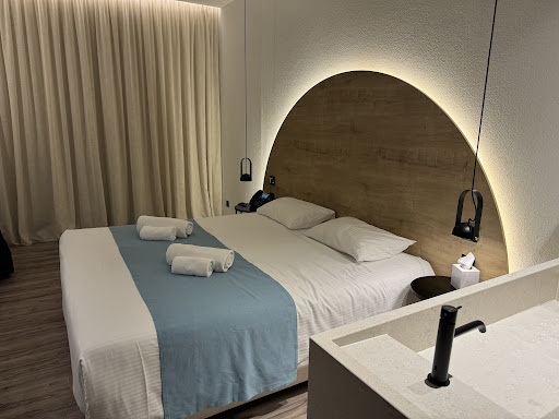 Check in was easy, room was ready for us as we arrived about 8pm. Room: was on the high tech side, reminded me of Wynn resorts in Las Vegas, lights all on one control system. May suite some people but the panel wouldn’t completely dim at night and it’s bedside so you’ll see it during sleep. Blackout curtains don’t black out completely so you’ll wake up to sunshine every morning. They’re strict with the towels in the room if you don’t get the room cleaned they will exchange for new ones. They don’t have face towels. Their shampoos and soaps are of good quality. Bed was very comfortable for us and the pillows; however we heard one lady complain it was too soft and wanted a board under the bed. The room we had was right across where housekeeping congregates each morning - kind of loud but was able to go back to sleep after they start their work. Apparently if your room has the DND sign on housekeeping cards do not work for entry. I liked that feature, So no one wakes you up knocking at 8am. Breakfast: -2 floor by the pool. The breakfast had several options for sweets/pastries, fruits, yogurts, cereals, meat, meats, eggs, coffee, juice. But I’d have to highlight the breakfast staff, they were kind and very hard working. We always arrived just about a half hour before, and one gentleman would offer all the guests one last opportunity at the food and beverages prior to closing at their scheduled time. Spa and gym: -1 floor, gym area is clean, equipment ranges from benches, free weights, cables, treadmill and bike, yoga class/aerobic room, TRX, foam rollers, yoga mats/balls. Spa is nice, but a little small for a luxury type hotel. Hours are 0900-1630. We booked a couples massage a couple days prior. Unfortunately one of their massage therapists wasn’t able to come in on the day we had scheduled so we had to split our times- one after another - I thought it would be appropriate to offer even a 5 or 10% discount on the service for the inconvenience/not the advertised option - but I didn’t bother- just wanted to enjoy it. Elena at the front desk of the spa at least helped us coordinate and was sincere. She made sure everything was perfect for us. The massage itself was great, Fatima was the therapist who worked on my wife and I, very thorough, relaxing massage with good pressure. Not sure what she put on my face but it’s probably the softest in my life. Came out feeling fantastic. Pool: the chairs get packed, have breakfast early and grab the area you like. The beach right in front of the hotel is nice, clear waters, right amount of shallow to stand knee or hip depth. Front desk: these ladies are one team that handle the hotel, luggage storage, check in/out, any room issues, etc. most on the stoic side, they don’t smile as much as the rest of the island. Always felt a bad vibe/tension crossing in and out of the hotel Location: just a 2min walk to the strip. It’s close to the beginning of the strip, lots of great options for food, cars, tours, mini markets, gift shops. Good spot if you want to be close by to everything. There’s a bus 101 or 102 that can take you into Ayia Napa or other beaches. Just go to the bus station and there are boards with the direction of bus and timetables. They only take cash/euros. The front desk didn’t seem like they knew a whole...