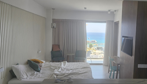 Read moreStayed here for 10 nights with my boyfriend bed and breakfast in a side sea view room. Let's start with the positives, the location of the hotel is perfect, 2 minute walk to the strip but no noise can be heard at night and 2 minute walk to the beach. The hotel is spotlessly clean and house keeping were brilliant they came every day to clean and replace anything we needed and were always friendly and said hello. The room itself was very spacious and the bed was huge and very comfortable. Even though we booked a side sea view room when opening the balcony door we realised we were directly facing the sea and also had a view of the pool with a huge balcony so I'm not sure if we got an upgrade or if this is correct. Reception staff were always pleasant and said hello as we walked past, same goes for the pool bar staff. We didn't use the indoor facilities as it's summer and we were always outside but we did go and have a nosey, nice indoor pool and gym and a small games room. Well done to the maintenance guys who I saw nearly every day coming to check on the pool and test the water,the pool was always lovely and clean during our stay and appeared well maintained. On one of the days there was a dj round the pool,this was really good and created a bit of an atmosphere because usually it was silent. Definitely think there needs to be some background music played around the pool. |Now for the negatives, the pool and pool area is far too small for the amount of guests staying at the hotel and there are not enough sunbeds. I appreciate we stayed during the uk summer 6 week holidays and the Cypriot holidays however, people were able to walk in from the street and use the facilities and locals who were staying there had groups of friends round the pool area reserving sunbeds and tables and chairs etc. As mentioned above we stayed bed and breakfast but we only went for breakfast once as it was an absolute shambles, the area where breakfast is served is again far too small for the amount of guests staying at the hotel. People were walking around with plates of food trying to find somewhere to sit to eat because there were no tables, people were constantly bumping in to each other trying to get to the food as it was so cramped. The food itself was actually okay and hot the day we did manage it😂. This hotel is ideal for a base if you're...