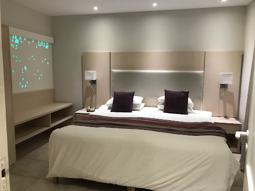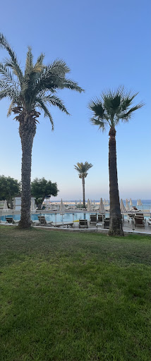 Read moreThe location - right on the Kalamies Beach - makes this hotel a perfect beach holiday destination. Just make sure you go bathing or swimming in the left side of the lagoon as it has clean sandy seabed, the part on the right is full of sharp rocks just under the water's surface and it's just too dangerous. Our apartment was big enough for 2 people to comfortably enjoy their holiday. The balcony was very big and offered great views of the sea and the surroundings. The only minus - no shade on the balcony until almost noon. We were there in early October, when the sun is much lower, so that was only an issue in the mornings, but we can imagine it could be scorchingly hot during summer months. We were in Building D, the most left part of the hotel complex, and if you're after quiet evenings avoid this building - right next to it is another hotel with outside functions area which plays hosts to weddings, birthday parties and company events. The music is very loud, starts around 6-7 pm and doesn't stop until at least 10 pm. During our 11-day stay they had events every second night. The hotel restaurant is called Bloo. It's nothing fancy, but the meals are good. We had Halfboard option so we ate breakfasts and dinners there. Not a huge variety of dishes for dinner, but always enough quantity and we always had several choices which were to our taste. Same with breakfasts. And there are plenty of utensils there (some hotels run out of them quickly). The only disappointment - very poor choice of fruit (basically it was only apples, melons and watermelons). Andreas, the elderly floor manager at the restaurant, is Pure Class. The staff were friendly and very helpful. We had a small electrical issue one night with some buzzing sound coming from the fuse box in the apartment. We did let know the receptionist about that as we were going to dinner, and the problem was fixed before we returned to the room. There's a small supermarket at the hotel - fairly good choice of food and drinks as well as plenty of "beach stuff", not cheap but open every single day. Lots of other supermarkets within a 5-10 minute walk. Several restaurants close by. Ample free parking at the hotel makes for worry-free parking if you...