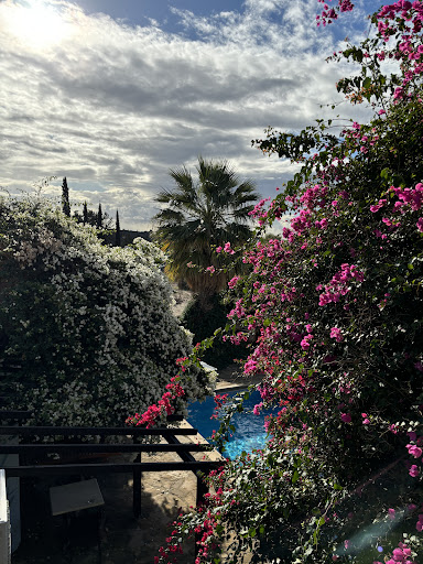 From the moment we arrived, we were captivated by the stunning stone architecture, vibrant bougainvillea, and peaceful ambiance. The courtyard, with its crystal-clear swimming pool, was a serene oasis surrounded by colorful flowers and rustic stone walls – the perfect place to relax under the Mediterranean sun.