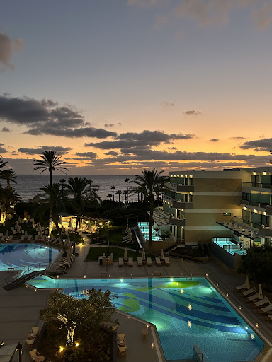 Read moreThis is a such wonderful hotel where everyone goes out of their way to make the whole experience special for you. I have split this review up, which I hope you find helpful:-||Location: The hotel has a sea front position with a promenade that stretches to the harbour. It is a beautiful walk that takes you past a number of hotels. Go in the evening as the sunsets are incredible. It took us 40 minute to walk (one way) but well worth doing and I did stop to take lots of photos.||Clientele: When we arrived (mid June) there was as definitely a more mature demographic, however, as the week went by, I noticed there was a different mix of ages. My daughter (21) was by far the youngest but given we both wanted a quiet, relaxed and luxurious break - this is exactly what we got. If you did fancy something more upbeat, there are some lovely bars further along the promenade. ||Rooms (land view): Lovely large room with 2 bathrooms and house keeping attended twice a day. We booked a land view but did have a partial sea view which was nice but it was so hot, we didnât sit on the balcony at all. Unless you are one to sit on your balcony, I personally wouldnât pay extra for a pool view. Once we got back to hotel each day, weâd go out for drinks/dinner and spend our evening enjoying the views from the VIP bar, restaurant and gazebo. ||TIP take your own shampoo and conditioner. The hotel provides this but it was not moisturising enough for me or my daughter and we ended up buying some.||Sea: There are flat rocks to get into the sea but the hotel does have a pontoon for you to access the sea (if you donât have sea shoes) which is just behind the pool. ||Pool: There are 2 pools, which are connected, so you can swim between them, so technically is just one big pool. Twice a day there is an aqua class in the smaller pool where it can be accessed by steps (rather than ladder as in the bigger pool). No diving as the pool is not deep enough. There are midday smoothies/juice and you also get iced flannels to keep you cool, which is a nice touch. ||Sun loungers: Whilst there are plenty of sun loungers, people do come down early and put towels on them (which really annoys me especially when they donât appear until after lunch!!!). There are loungers all around the pool, on the grassed area and a few on the beach, so no need to be selfish and reserve. There was only one day I could not find a lounger (I came down at 12) but the pool attendant found me a couple of loungers that whilst being âreservedâ had not yet been used, so he moved the towels. There is also smoking/vaping permitted around the pool but we noticed that many smokers went away from the pool to smoke.||Food: We went all inclusive. Breakfast is a buffet. Lots of choice and you can have fresh omelettes as the chef is on hand. We really enjoyed the buffet breakfast. Lunch is at the restaurant by the sea and is not a buffet. You can have âsnacksâ by the pool bar but it is the same menu as the restaurant. Dinner - here you have 3 choices of buffet and 2 restaurants (the latter two you need to book at 9am the night before in the app - we never had an issue booking). The evening buffet has a nice choice but our favourite was the restaurant by the sea. Lovely food, service and stunning view. ||Entertainment: This is low key and discreet, which I really liked, such as a saxophonist, pianist and traditional guitarist. There were 2 more energetic nights which involved Elvis and then traditional Cypriot dancers. ||Summary - I would 100% return. The hotel is lovely but the staff make this experience very special: they are very skilled in making you feel special, from remembering your room number to knowing what drink you like at lunch time. Itâs the extra touches that made this week...