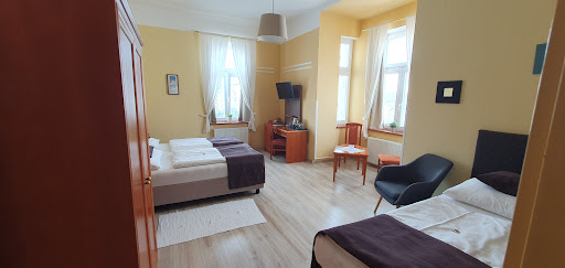 We had an apartment with three bedrooms (we only used two) and six beds. Two full rooms with king size beds and one small side room with two single beds. Everything was looking freshly renovated. The beds were OK and little on the hard side. The shower was good. There is no kitchen and few power plugs. Careful: there is no lift and we were on the fourth floor!||||The breakfast is from 7:30 to 10:00 in the restaurant downstairs and very good. There was good coffee, tea, milk, cereals, a great variety of rolls, sausage, cheese and hard boiled eggs. The landlord is extremely friendly and speaks English and German and …||We also had dinner three times in the restaurant, all good and at great value.||||The place is easy to find on the main road to downtown. The entrance to the yard is in the small one-way side road. There are usually enough parking spots for all residents. Parking on the street is with restrictions. Walking downtown can be done on the main road with some window shopping, or through the park (go to the right when exiting the building and then north). The walk takes about 15-20 min.||||We give full five points due to the excellent price quality ratio!||||Marienbad is a very beautiful old spa town with beautiful renovated buildings. There are many mineral water sources to try and many trails to walk into the surrounding woods. The weather was significantly cooler than e.g. in the Frankfurt area and we had more rain.||||Great tours go to Franzensbad (Spa town), Soos, Klatzko (natural reserved with interesting landscape and spring / volcanic activities), Karlsbad (Spa town) and Loket (great medieval city and castle).||||Food and great beer is never far and always well priced. We paid between 25 to 50 € for a family of three, being very full, as portions are rather large! You need to reserve for dinner or come early (6 pm).||||Enjoy this great region and fine...