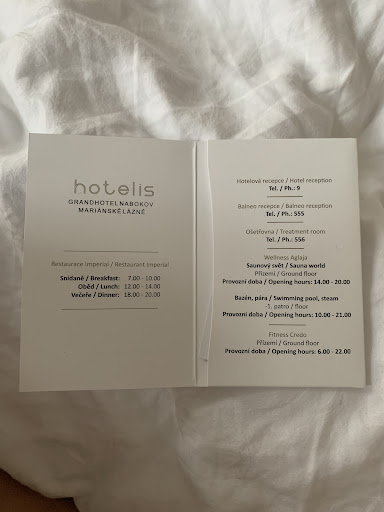 Read more🇩🇪 Das Grandhotel Nabokov liegt am Rande des Stadtzentrums, in der Nähe von Touristenattraktionen. Das Hotel besteht aus 7 miteinander verbundenen Gebäuden. Bristol - Zimmer 201-210, 301-310, 401-410, + Bristol Club, Kinderecke. Imperial - (Haupteingang), Zimmer 311-317, 411-419, 501-505, + Restaurant, Konferenzraum, Rezeption, Bar-Café. Poeta - Zimmer 111-119, 211-218, 318-321, + Thai-Massage (Reservierung an der Rezeption). Aglaja - Zimmer 115-118, 215-217, 322-328, + SPA-Rezeption ( die Reservierung unterliegt nicht dem Hotel), Sauna, Innenpool. Credo - Zimmer 128-129, 227-234, 333-340, + Fitnessraum. Columbus - der gesamte Bereich des Gebäudes steht unter der Aufsicht des Wellness Center, der Ärzte und der Krankenschwestern (alle Behandlungen außer Thai werden vom Zentrum bestellt). Das Hotel und die Zimmer sind sauber, der Teppichboden könnte aus gesundheitlichen Gründen erneuert werden. Dreigeteiltes Restaurant, Mitte - Buffet, rechte Seite - Speisesaal 😉 Premium Class (über dem Eingang des Hotels - gläserne Außenwände), linke Seite - Speisesaal 😉 Economy Class. Speisen schmackhaft und ausreichend, keine besondere Dekoration. Der nächste überdachte Parkplatz, 24 Stunden bewacht vom Hotel entfernt 🚙 ca. 2 Minuten, Zahlung in Kč und € (24 Stunden 200 Kč ca. 8,55 € - Wechselkurs). Sehenswürdigkeiten ab Hotel:, Kreuzbrunnen, Quellpavilon 🚶🏻♂️ ca. 2 min, Kolonnaden 4 min, Singende Fontäne 5 min, Karolina Kolonade und Quelle 7 min. Marinbad Oblaten 3 min (Nehrovs 29/10), Kolonada Cafe & Shop 10 min (Hlarni 122). Karlovy Vary (Karlsbad) - 🚙 ca.45 min. Anreise von Deutschland nach Marienbad und Karlsbad ohne Vignetten. Sie können überall mit € und per Kreditkarte bezahlen.
