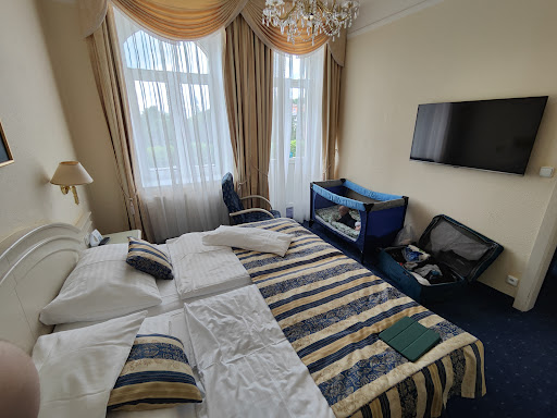 Read moreMy wife and I spend two weeks in this beautiful hotel. The hotel is situated in the center of Marianske Lazne, a beautiful spa-town close to Germany. We booked the hotel with 2x24 spa-treatments, which included for example massages, aqua gymnastics, peat wrappings, etc. as well as a medical investigation (incl. a blood test). The service quality and friendliness of the staff was astounding; as well as the suite, which included a small kitchen; and the treatments. ||||The only disappointment was the food. We unfortunately booked the hotel with full board. The breakfast was acceptable, but with little variation (tip: avoid the watered-down juices from the juice dispenser, but take the freshly squeezed juice instead). Lunch and dinner offered beef, chicken, fish or pork as main courses. We had a feeling that there wasn't a real cook at work, because the food was unimaginative, repetitive, tasteless (apparently they don't know how to season food) and overcooked (like the rice, veggies and noodles). Luckily there were some great restaurants nearby (tip:...