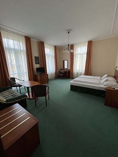 Read moreПройти курс реабилитации после серьезной операции в Чехии решили ещё в декабре 2019. Выбрали Марианские лазни, а не Карловы Вары, так как в МЛ холодные источники, специализация на профилактике и реабилитации именно опорно-двигательного аппарата. О Марианских лазнях знали только по наслышке и рассказам знакомых, выбрать отель оказалось непросто. Критерии выбора жёсткие: полный пансион с напитками на обеде и ужине (мало отелей предлагают такой вариант), собственная лечебная база, наличие бассейна, пешая доступность до источников минеральной воды и Главной улицы, отсутствие ступеней на улице и лифта в отеле... Остановились на отеле Вестенд, 4*. И не пожалели ни разу за все 15 дней проживания в нём. Отель расположен в здании 19 века, уютный, домашний, всего 37 номеров (надо сказать, что в то время, как большинство отелей в феврале полупустые, этот заполнен на все 100%). Расположение очень удобное, до Колоннады 5-7 минут по ровной дороге, до Главной улицы вообще пара минут. Рядом лес с променадом, городской парк. ||Номера в отеле большие, на 2, а некоторые на 4 окна. Потолки высокие, освещение отличное. Постели удобные, только подушки подкачали, неплохо бы их поменять. Есть всё необходимое - холодильник, телевизор, кружки, стаканы, открывалка для бутылок. Чайника нет, но в баре всегда стоят полные термосы с горячей водой, можно взять в номер бесплатно. Мебель деревянная, немного уставшая, но содержится в хорошем состоянии. Кондиционера нет, зато есть балкон. Что удивило, так это наличие табуретки в ванной и длинного рожка для обуви, очень удобно для людей с проблемой ОДА. Халаты и тапочки в номере. Меняют по первой просьбе, подбирают размер. Ещё в номере много розеток, проблем с зарядкой гаджетов или своего фена в ванной комнате нет.||Питание хорошее, разнообразное, блюда вкусные. Спасибо шеф-повара! Места в ресторане фиксируются на все время пребывания. Очень удобная система заказа ланч-бокса на время экскурсий - на столе бланк и ручка, заранее вносишь данные и получаешь свой сухой паёк. Ресторан уютный, скатерти тканевые, белые, приборы хорошие. Официанты стараются, убирают все моментально. Вообще, все сотрудники отеля, включая лечебное отделение, внимательны, говорят по-русски, вежливы, всегда готовы помочь. Особенно Олег и Алексей на...