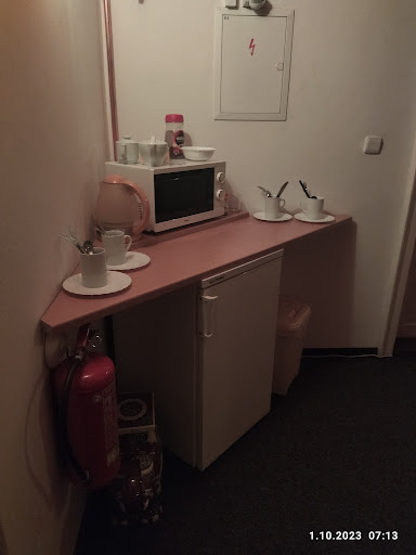 Read morePokoje w porządku, ale brak porządnego parkingu, a to co jest obok ciężko parkingiem nazwać. Babeczka z recepcji bardzo miła. Wi-Fi działa, jakby chciało, ale nie mogło. Duży problem mieliśmy z lodówką na korytarzu. Ktoś notorycznie zmniejszał temperaturę chłodzenia i zgaduje, że to personel, bo inni goście też mieli w środku produkty pokryte już wodą. Jeżeli ktoś trzyma tak jak my leki w lodówce to trochę słabo szczególnie gdy te leki...