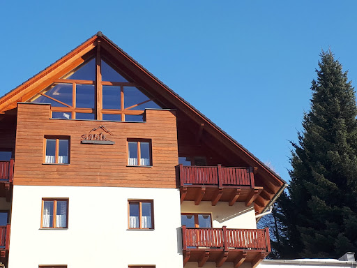 Naprostá spokojenost. Čisté, útulné, velký apartmán, společenská místnost, místnost na lyže, sušáky na lyžáky,.... Zvolili jsme toto dražší, téměř luxusní ubytování, bližší ke sjezdovkám, s kuchyňkou v apartmánu oproti levnějšímu, ale po všech uvedených stránkách horšímu ubytování. A nelitujeme, těch 10 000 Kč rozdíl za dva lidi dohromady za 7 dnů se "vyplatil". V resortu se nacházejí i ubytování blíže ke sjezdovkám, ale ty už byli plné. Jo chata se jmenuje Sobík, ale mají tam při tom plno postaviček losíků a doplňků s losy. Pro některé lidí to je mimo rozlišovací schopnost, ale los je větší, samec má lopatkovité paroží, samice žádné a žijí samotářsky. Sob je oproti menší, paroží má spíše takové klacíkovité a mají jej i samice. Žijí ve stádech a tahají saně Santa Clausovi. Nyní (v 01/2025) jsou na pokojích při příjezdu 2 role toaletního papíru a 1 sáček do koše a na polici u bytu správců je k dispozici obojí náhradní. Komu dojde, tak si vezme. Za mě to je naprosto v pohodě, možná to tak udělali po předchozích připomínkách. I tak by mě zajímalo proč nedají do každého apartmánu větší zásobu. Asi to má nějaký důvod. V naší šestce byla na záchodě taková římsa, tam by se těch rolí vešlo třeba dvacet. A do skříňky v kuchyni vedle koše, by se těch rolí pytlíků vešlo třeba padesát. Že by jim to lidi kradli? Nemyslím si, je to téměř luxusní ubytování, ostatní hosté mi přišli na úrovni, různě zdravili, mluvili anglicky, nedělali bordel apod. Každopádně za mě je současný systém O.K. Kdybych už něco měl navrhnout na vylepšení tak doplnit druhý koš na umělou hmotu a třetí koš na papíry. Ale ani popelnice tam takhle rozdělené nemají, tak by to pro ně pak znamenalo trochu...