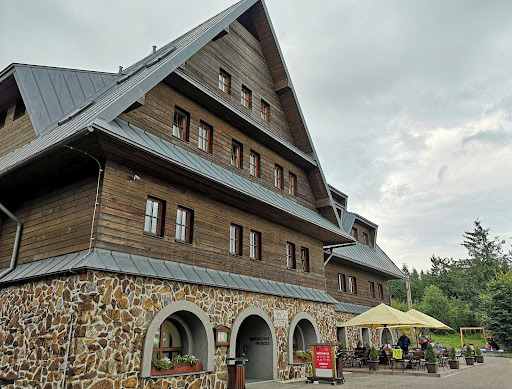 Read moreBewertungsgrundlage für eine Hotelkritik sollten aus meiner Sicht immer 4 wesentliche Punkte sein: Preisklasse, Service, Schlafqualität und Sauberkeit des Zimmers.||||Das Hotel Kramarova chata erhält daher von mir insgesamt eine 3-Sterne-Bewertung, da die genannten Punkte wie folgt ausfielen:||Der Preis der Übernachtung ( 44 € im EZ ) war gemessen an der Lage des Hotels und der Hotelkategorie sehr günstig||Der Service war gewöhnungsbedürftig und – wie im gesamten Tschechien – ein wenig muffig und verbesserungsfähig, und zwar sowohl im Hotel als im Restaurant. Dies ist mir umso mehr aufgestoßen, da während meines Aufenthaltes maximal 8 Gäste im Hotel waren und dennoch kaum Aufmerksamkeit des Servicepersonals zu erzielen war||||Die Schlafqualität war sehr gut, da das Hotel ganz oben auf einem Berg mitten im Wald liegt||||Der Ausblick war an sich phantastisch, wird aber ein wenig getrübt durch eine ungeheure Mengen an Antennen und Satellitenschüsseln, einen scheußlichen Wasserturm und Hirsche in einem Gehege, deren Haltung eigentlich ein Eingreifen des Tierschutzes erforderlich macht.||||Das Zimmer war sehr groß, und es gab ausreichend Schränke und Verstaumöglichkeiten.||Das Bad war groß und in gutem Zustand.||||Das gesamte Hotel ist sauber, und im Stil eher ein wenig spartanisch und lieblos im Stile einer Jugendherberge aus den 70er Jahren||||Das Frühstück ist richtig mies und lustlos. Bei schönem Wetter sollte man darauf bestehen, vor dem Hotel an den dort vorhandenen Holztischen zu frühstücken, die Begeisterung der Personals dafür hält sich allerdings in engen Grenzen. Warum im Frühstückszimmer morgens der Fernseher laufen muss, entzieht sich meiner Kenntnis; erfreulicherweise habe ich aber die Fernbedienung gefunden !||||Das Restaurant ist bescheiden und serviert lokale Gerichte mit dem Schwerpunkt Wild; die Qualität geht aber sicher nicht über untere Hausmannskost hinaus. Immerhin wird man problemfrei satt.||||Kulinarische Ausweichmöglichkeiten gibt es leider in der Umgebung nicht.||||Die Erreichbarkeit mit öffentlichen Verkehrsmitteln ist nach meiner Kenntnis nicht gegeben !||||Das Hotel war als Übernachtung auf meiner Motorradtour okay, aber mehr eben...