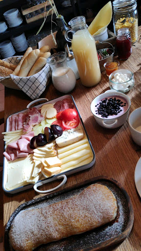 Obsluha: Tady vás přivítá majitel, nebo majitelka se stálým úsměvem na líci. Jejich péče o vás je velmi příjemná a snaží se vyhovět každému přání, dokonce i kolemjdoucím motorkářům, cyklistům vyjdou vstříc, přestože měli zavřenou restauraci, tak je pohostili. Jídlo: Pro mě velké překvapení byla kuchyň. Příkladem může být rajská omáčka s těstovinami a hovězím masem. Jak jsem četl tuto nabídku, tak se mi protočily panenky a začal jsem shánět nějakou restauraci v okolí, protože představa totálně na mraky rozvařených těstovin na oranžovém UHO s masem, které budu hledat lupou mě moc nelákala. Vše bylo jinak, neboť jsme dostali celozrnné těstoviny, které byla připraveny aldente na chutné rajské omáčce, která měla i odpovídající barvu a s masem, které bylo bez žilných přísad. Jinými slovy, pokud si myslíte, že vás nemůže překvapit fádně znějící název jídla, tak tady vás hodně překvapí. Jídlo je čisté, není přesmažené, neteče z něho olej, není převařené, nedovařené. Snídaně byly excelentní, raději místo slov jsem nafotil jedSnad jen menší individuální připomínku bych měl k solení, raději si sám dosolím