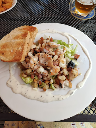 This is the best choice for a meal in a small village with a bunch of poor choices. That’s not to say it was terrible, it was quite ok and reasonable value for the money. Just it does suggest certain conditions to ensure a moderate level of satisfaction. Perhaps the most important rule is - Stick to the simplest meals on the menu. Meals that are extremely common, like pork steak or chicken schnitzel. Don’t order anything that hints of foreign lands and stay away from the imported fish. The food here tends to be too greasy, so stay away from the food in meat sauces and gravies if you you want to avoid grease. (Example the meat and livers wrapped in a potato pancake was soggy and uneatable.) The corollary to the above is that the meals will be very very simple. The salad is the typical (classic?) Greek salad (tomatoes, cucumber, onion, the omnipresent Edam cheese and maybe some black olives) with limited spices and just a little oil and regular vinegar. My advice, go in with low expectations, order simply, and you won’t be...