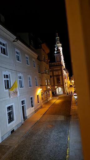 Stayed here for one night and the location was very convenient, just off the old town square. However, the accommodation was very basic. |The reception was only open until 9pm but the receptionist actually left at 8:30pm.||The rooms were very tired with cheap looking furniture, the carpets looked dirty with stains on them. The curtains were so short that they didn't even cover the full window so in the morning when the light came in, the sun was shining in your eyes. |No coffee or tea making facilities.|The headboard was attached to the wall and covered over the plug sockets. |The shower had mould around the grouting and rust on the shower head.|The upside was that the bed was relatively comfortable.||The room we stayed in was close to the stairwell and the lights in the hall were on a timer and needed to be switched on. When you came out of the room, there was no light switch close to the door and you had to guide yourself in darkness to find the light switch. I think this is actually dangerous considering there is a stairwell right next to the door, with tiled stairs. If someone was to lose their footing in the dark then they could seriously injure themselves. ||The breakfast was again very basic.|Nothing cooked. Just some bread rolls, ham, cheese, a few cereals and cakes in a wrapper.||I think some room renovations are in order and they should but a door over the stairwell to prevent accidents.|It was bearable to stay just one night but couldn't have stayed here...