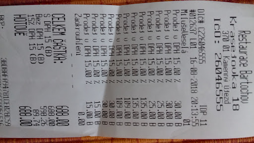 The meals were really bellow the average. 2 days ago we went to the Bistro Libra (1km from here) and it was brilliant. I got a goulash and the dumplings were like from supermarket (they they were). Another meal was a steak with cranberry sauce but it was probably boiled and tasted really weird. The soup was without any taste, thank god Magi was on the table. Then in the menu, there was a fish for CZK 199 and they charged us CZK 215 without even saying it. Beer was bellow the 0,3l mark. And the waitress never smiled nor asked us if everything had been fine or wished us to enjoy the meals. Personally I do not...