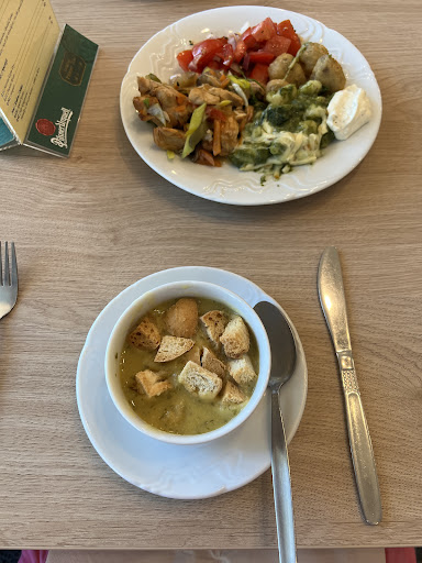 Dieses Hotel suchten wich aus für einen Zwischenstopp bei der Rückreise aus unserem Motorradurlaub. Der Empfang war leider nicht so toll, als wir das Hotel betraten hockten alle vorm Fernseher und schauten das Eishockey Halbfinalspiel der Tschechischen Nationalmannschaft. Das wäre ja alles kein Problem, es gab aber kein Hallo oder ähnliches und die Laune der Rezeptionsdame war nicht die Beste und wir waren einfach zum schlechtesten Zeitpunkt angekommen und störten sie beim Eishockey schauen. Wir erhielten dann unsere Schlüssel und durften die Zimmer beziehen, diese wahren gut ausgestattet und sauber. Nach dem beziehen der Zimmer machten wir uns frisch und wollten noch etwas Essen gehen, wegen dem weniger freundlichen Empfang wollten wir dies außerhalb des Hotels tun, aber leider nichts in der nähe was man Fußläufig erreichen kann. Also entschieden wir uns doch im Hotel ins Restaurant zu gehen. Unten angekommen setzten wir uns an den Tisch und wurden prompt von der Bedienung darauf hingewiesen das wir nur Frühstück gebucht haben. Beim buchen und durchschauen der Website gab es leider keinerlei Hinweise darauf das das Restaurant nicht "öffentlich" ist und "Abendessen" dazu gebucht werden muss. Dies sollte man vielleicht mal erwähnen. Wir fragten dann die Bedienung ob es nicht möglich wäre das Essen noch nachzubuchen, das klärte sie dann mit der Küche ab und wir durften aus dem Menü des Abend´s wählen. Das gewählte Menü war wirklich ausgezeichnet und schmeckte super, Kompliment dafür. Im Laufe des Abend´s taute die Bedienung (Rezeptionsdame) dann auch noch auf und lächelte dann sogar. Somit wurde der erste Eindruck auch wieder etwas entschärft und wir füllten uns dann doch willkommen. Das gebuchte Frühstück war reichhaltig und sehr gut.