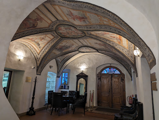 Read moreSpending a few nights in the Edward Kelly suite of this 17th-century hotel was certainly a memorable experience. At first, as Australians, we were puzzled to see a suite named after “Ned Kelly,” an the infamous bushranger from back home. We even spotted a nearby restaurant bearing the same name! A little digging revealed the difference: this “Edward Kelly” was an English alchemist, best known for his exploits with Emperor Rudolf II in Prague. He dabbled in alchemy, claimed to talk to spirits, and was later accused of fraud and forgery. Not quite our Ned Kelly, but an intriguing historical twist all the same.||The hotel itself is steeped in history, having once been a brewery and even a prison. The building originated from two houses joined together in the 1600s, and today each room is individually decorated in period style. Our suite was spacious, with a comfortable bed, a small shared sitting area, and a bathroom featuring a bathtub. The bath, however, came with some quirks: the handheld shower sits above it, but with no curtain and high narrow sides; it was a challenge to get in and out without a bit of gymnastics and a puddle on the floor!||Another detail worth noting are the sloped ceiling beams above the bed. They certainly added character, but as a taller guest I had to stay alert to avoid a bump on the head. The suite didn’t include a fridge, laundry service, or full coffee setup however an electric kettle was provided. Our suite had air-conditioning. It was also very quiet. ||Breakfast provided both continental and cooked options. There was also a number of outdoor seating areas scattered through the property. Above all, the location couldn’t have been better. It was right in the centre of town, perfect for wandering the historic streets, hidden corners, and local sights.||If you value charm, history, and atmosphere over the uniform conveniences of modern hotels, this place is a gem. We’d recommend choosing one of the suites to truly soak up its unique character...
