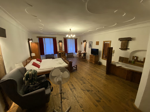 Read moreRustikales Stadthotel direkt in der Altstadt von Cesky Krumlov. Zentraler geht es nicht. Einen Parkplatz oder ein Parkhaus gibt es nicht, wir würden aber den Parkplatz P2 empfehlen, falls man mit dem Auto anreist. Von dort sind es nur ca. 10 Gehminuten bis zum Hotel. P1 am Schloß wäre noch näher, aber auch deutlich teurer, v.a. bei den Tagespauschalen für PKWs, die länger als ein paar Stunden stehen bleiben wollen. Das Hotel selbst besteht aus drei miteinander verbundenen Häusern. Alles ist recht verwinkelt. Die Dame an der Rezeption zeigt einem beim Check-In deshalb erst einmal persönlich den Weg zum Zimmer. Das Personal war durchweg freundlich und auch das Frühstück war ausreichend. Allerdings muss einem bewusst sein, dass die Tschechen allgemein keine großartigen Frühstücker sind, weswegen auch das Frühstücksbuffet nicht riesig war: zwei verschiedene Säfte, Kaffee, Tee, gekochte Eier, jeweils 2-3 Sorten Käse und Wurst, 2 Sorten Brot, Semmeln, Toast, ein paar frische Früchte, ein paar Cerealien und 3 Sorten Marmelade, dazu der typische Kleinkram wie Butter oder Schmelzkäse. Das war es dann auch so ziemlich. Wir fanden es trotzdem absolut ok und die Theke wurde auch regelmäßig wieder aufgefüllt. Die Zimmer sind rustikal und mit viel Holz eingerichtet. Die Zimmertür hat etwas gezwickt, weswegen man beim Öffnen und Schließen etwas Kraft aufwenden musste (Zimmer 19). Das Bad war aber sauber und geschlafen haben wir in den beiden Nächten tatsächlich sehr gut. Wir würden wieder kommen. Kleiner Tipp für die Damen: Überlegen Sie gut, was Sie in den Koffer packen. Cesky Krumlov ist eine alte Stadt mit Haufenweise Kopfsteinpflaster, v.a. auf dem Weg vom Parkplatz bis zum Hotel. Da können 10 Minuten Gehzeit ganz schön lange werden, wenn man die ganze Zeit den schweren Koffer tragen muss. Wegen dem Kopfsteinpflaster würde ich nicht empfehlen, die Koffer hinter sich her zu ziehen, sonst ruiniert man...