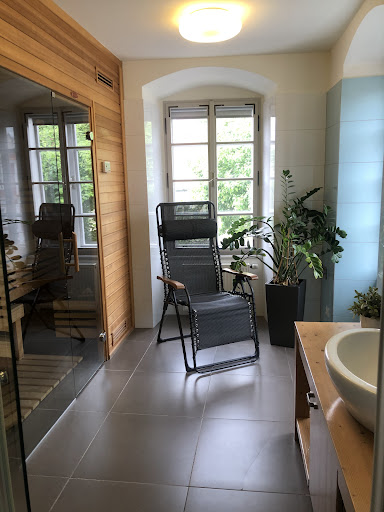 Read moreRecommended. Very quiet neighborhood located just across a bridge from the Old Town. Views of the Round Tower, Old Town steeples and rooftops. From the Pension, a short walk to the stairs (100 steps) leading to the bridge. Excellent staff, just wonderful. On check-in day, staff reached out to confirm arrival and, pretty much, met us at the door to guide us to a parking space. We stayed two nights in this very attractive 1-bedroom apartment w/sauna. Plenty of room for two travelers, stated size is 45m². Very clean. Large bedroom with desk and 2 chairs. Bed and pillows very comfortable. The bathroom is large with ample counter space, large shower stall and a beautiful sauna (didn't get to use). The commode is located in separate water closet. The entry and roomy kitchen areas separate the bedroom and bathroom. Kitchen table has 3 chairs. No sofa or cushy chairs. Wi-Fi was generally good but spotty in some areas. Power plugs were adequate for charging devices. Kitchen nicely equipped with utensils, toaster, coffee maker, electric water kettle, small fridge (stocked with beverages for purchase), 4-burner induction cooktop. SDB. We were able to park on-site. Payment terms: Paid...