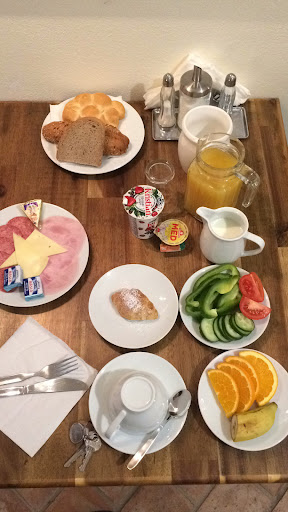 We stayed in the Anna Maria room for six nights and couldn’t have been happier with our choice. This is their largest room, a gorgeous suite with a living room, bedroom and huge ensure bathroom with a large soaked tub and hand held shower wand. I got a chance to look at the other three rooms located on the second floor, and while they were nice, they were definitely much smaller, so if you can, I’d ask for the Anna Maria suite. It really is a lovely room.||||We have stayed in Cesky Krumlov before at hotels near the town square but we liked this location better because it was much quieter with very little pedestrian traffic. ||Also, if you arrive by car like we did, it is one of the few places in Cesky Krumlov where you can actually park your car...they have a parking lot just a few feet away from the hotel. However, be warned that the street you have to drive down to get to the hotel is very narrow and I recommend you fold in the outside mirrors in so you don’t scrape them on the walls as you drive down the street...we did that one day! So be warned!||||As other reviewers have mentioned, the location is great and you are in walking distance of everything. If you do take your car out, you have to get a special permit that allows you to drive in the pedestrian only area. And the police had a road check set up one day so make sure ask for this permit when you drive in and out. There is a small fee for this.|| ||The breakfast was excellent! Hot items including scrambled eggs and bacon, hard-boiled eggs, lots of fresh fruit, cheese and cold cuts, pastries and coffee cakes, yoghurt and cereal, Fresh rolls and bread, juice, and the best coffee we had on the whole trip! We ate so much at breakfast that we didn’t eat again until dinner!||||I highly recommend the Penzion Kapr. The perfect choice for a stay in beautiful...