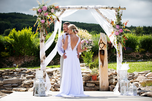 U Ševců jsme měli svatbu v červnu 2023 a jistě víme, že lepší místo jsme si vybrat nemohli. Již při první návštěvě nás místo okouzlilo – nádherná udržovaná zahrada s výhledem na Kleť a Blanský les, jezírko s molem a vyzdobenou slavobránou, taneční parket v zimní zahradě (to pro nás bylo velké plus, protože přes den se dají okna úplně otevřít a hudba je tak slyšet ven, a zároveň večer se okna dají zavřít a nemusí se tedy řešit rušení nočního klidu), dále pak útulně zařízený interiér. K tomu všemu byla naprosto skvělá a milá paní majitelka, se kterou se na všem dalo domluvit. Den před svatbou a v den svatby už jsme pak jen koukali, jak sehraný tým U Ševců je – je vidět, že všechny práce baví a nedělají to poprvé. Paní, která připravovala svatební tabuli a celkově výzdobu, byla strašně moc šikovná a měla skvělé nápady, co kam jak dát. Obsluha perfektní. Všechno úžasně připravené, v den svatby všechno šlapalo, jak má. Opravdu jsme nenašli nic, co bychom mohli vytknout. A co se týče jídla, tak takový poctivý vývar a svíčkovou, kterou nám U Ševců připravili, už v dnešní době jen tak v restauracích nedostanete. S večerním rautem pak byli také všichni svatebčani spokojeni. Ještě bych zmínila skvělou možnost ubytovat svatební hosty – pokoje moc pěkně zařízené, čisté a k tomu navíc bohatá a chutná snídaně. 😊