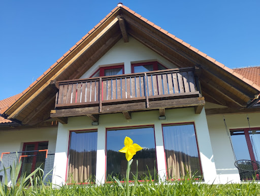 Neuvěřitelně kouzelné místo, 🤍 které bylo nad naše očekávání. ♥️ Neskutečné výhledy, klid, pohoda. Milujeme ty společné prostory v přízemí i venku. Vše nové, čisté, domyšlené. Vybavenost 1, 3 koupelny, vybavená kuchyň (myčka, lednice na led, kávovar na zrna, spousta nádobí, pípa, atd.), grill, překvapil nás playstation s virtuální realitou, možnost hraní pingpongu, šipek, a stolního fotbalu. Kdo má děti, tak i pro ty se koutek najde. Koupací masážní sud a sauna v zimě musí být fenomenální. A ty výhledy z nich?! Zahradní Robert pracoval každý den (robotická sekačka). Malá zpětná vazba: přístupová cesta by potřebovala péči, někteří měli problém vyjet závěrečný krátký kopec, natož co v zimě. A detail je i fén na vlasy, což do budoucna se dá určitě vylepšit. :) Ochlazovací bazének k sauně je prý též v procesu a co nevidět by měl být. 🙏 V létě by se už jen hodil do budoucna bazén a chata je dokonalá. Nicméně stále jsme na 1 za celý zážitek z našeho výletu....