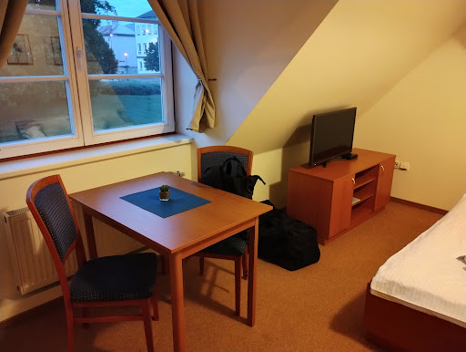 Read moreCiekawe miejsce. Łatwy dojazd, chociaż oznakowanie ... hmm, w zasadzie nie istnieje. Gdyby nie wielbiciel piwa stojący akurat na fajce, który widząc zdezorientowanych turystów, pewnie bym trafił, ale nie jest to takie pewne. Hotel mieści się na piętrze w budynku częściowo zajmowanym przez galerię (wystawy itd.). Brak piątej gwiazdki właśnie za brak oznakowania (szyld, tabliczki kierunkowe itp.). Otoczenie stanowi niewielki park, okolica cicha, spokojna. Poza tym: warunki bardzo przyzwoite, w pokoju ciepło, czysto, na śniadanie zimny bufet (poza jakimiś kiełbaskami nie było nic na ciepło, np. jajecznicy itd.), ale w sumie na co dzień też nie zawsze je się ciepłe na śniadanie. Więc nie marudzę. Obsługa, miła, dobrze mówiąca po angielsku. Wieczorem można zjeść "na mieście", w hotelu nie ma restauracji, ale to nie przeszkoda: 5 minut spaceru i jest się w dobrej pizzerii. Są również inne restauracje w pobliżu. Generalnie: jeśli miałbym raz jeszcze wybrać Penzion G to na pewno...