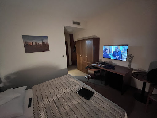 Read moreIf your looking for a formulaic, uninspiring room to rest until woken by local workmen in the street below at 06:30, this is the place for you. If you choose to stay on the top floor, it helps to be vertically challenged or to gave an absorbent head as the rooms are built into the sloping roof. On the positive side, there is safe parking and, for entertainment, you can listen to the coming and going of cats and lorries in the car park under the window.||You can plan the day until breakfast at 08:00 and, if there's a table, fill up with middle European fare. Lunch is available but no evening meals; these can be sought elsewhere as long as you are prepared to leave no later than 21:00- restaurant staff clear away tables, umbrellas...