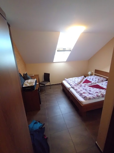 Prodloužený víkend s kamarádkou v rámci otevřených sklepů. Penzion má strategickou polohu pár minut chůze od vlakové zastávky, blízko centra městečka i cyklotras, přesto je zde klid. Disponuje štěrkovým parkovištěm s dostatečnou kapacitou a moc pěkným venkovním zázemím pro hosty v podobě krytého posezení u bazénu s vlastní vinnou kójí a venkovní kuchyňkou. Pokoj není moc velký, ale úplně dostačující, koupelna s WC prostorná, vše čisté a voňavé. K dispozici máte šatní skříň, stůl s jednou židlí a malou lednici. Postel je pro dámy středního věku velmi tvrdá, ve sprchovém koutu by se hodila polička na hyg. potřeby a ručník navíc, ale majitelé by ho určitě po dotazu na místě dodali. Všechny pokoje jsou v patře, takže pozor na ostré schody. V přízemí je společná jídelna s vybavením - varná konvice, mikrovlnka, nádobí, základní pochutiny ke snídani (inst. káva, čaj, cukr), lednice. Skvělá by byla možnost kompletních snídaní v režii penzionu, takto musíte chystat z vlastních zásob. Relax centrum jsme vzhledem k jinému programu nevyužily. Domluva s majiteli byla po emailech trošičku zdlouhavá, na místě ale perfektní a byli velmi vstřícní a ochotní. V rámci poměru cena-výkon je to výborná volba a rádi se...