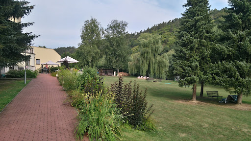 It is a hotel right in front of Samechov train station. The hotel itself is clean and the view is very nice. There is plenty of space to enjoy nature. It is a perfect spot for big families and also groups of people to enjoy their time. It is not very quiet though, as a train passes by the hotel with a sound every couple of hours after 5 A.M. The staff are helpful despite not being able to speak much English. The food at the restaurant is OK and I'd say quite healthy. The internet speed was very good.I enjoyed my stay as part of a training course...