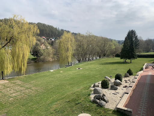 Read moreThe hotel is located just behind a railway station, don't look for it in the forest like my Nokia navigation suggested and my car service shop approved ;-)||||The hotel is very decent, has beautiful green playground and access to the river, where your children can enjoy themselves without risk of injury. There is sauna, dancing area, lot of trees around, very helpful manager and staff and there is beautiful sunset from the garden.||||The room was of good quality with features for disabled,...