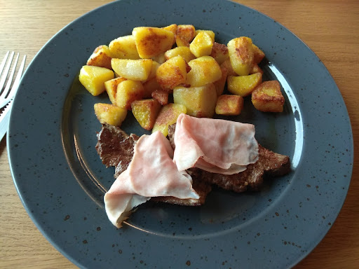 Read moreDnes jsme s manželkou navštívili tuto restauraci s cílem poznat něco nového a dobře se najíst.Obsluha byla velmi příjemná,ale co se jídla týká,tam už to tak slavné nebylo.Místo běžného jídelního lístku se nam do ruk dostal jídelní lístek s nabídkou poledního menu.Objednali jsme si tedy španělského ptáčka,ktery nám byl doporučen.Maso bylo uděláno celkem dobře,ale co se týká šťávy,tak ta byla velmi nepovedená, zřejmě z nějakého prášku.Po otázce obsluhy na spokojenost s jídlem a naší zápornou odpovědí se číšník nezdráhal říct si při placení o spropitné, což nás celkem překvapilo.Nehledě na moje následné střevní potíže, které evidentně pocházely z požitého jídla.Manželka jídlo nejedla,proto střevní potíže potkaly jen mě.Takže za mě záporné hodnocení a tuto restauraci...