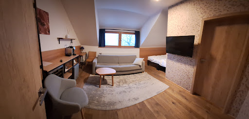 Had a fantastic 3 night stay here. ||||The lodge is situated in the middle of the woods, close to a nearby lake. You are surrounded by wildlife and beautiful forrest landscapes.||||The rooms are simple, but finished to a very high standard. A great shower, perfect for freshening up after a day's hike on the many various surrounding trails. We opted to hire bikes from a nearby cycle shop. ||||We decided to eat breakfast and dinner at the lodge, and were glad we did. Breakfast was a delicious selection of local cheeses cured hams fruits and breads; dinner, hearty local cuisine of delicious soups and well-cooked duck or tenderloin pork with dumplings, for example. All served with a wide array of local wines and beers.||||There are plenty of things to see in the surrounding areas, such as the Punkva Caves, or medieval castles, such as Pernštejn.||||I speak no Czech, my partner does. This might concern some travellers, but I hope it does not put you off. The staff were incredibly friendly (as were all locals we encountered) and tried to accommodate my language deficiencies! I would definitely...
