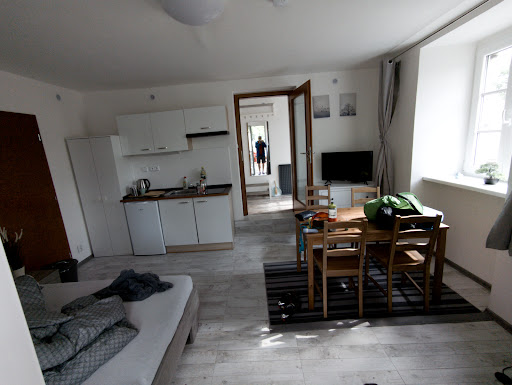 Pokój nieduży, ale czysty i na kilka dni ok, wszystko co potrzeba w nim było. czajnik i lodówka w pokoju, szybki internet, bliska lokalizacja do dworców i centrum handlowego, miła właścicielka, klucze do pokoju w specjalnej skrytce, bez czekania, miejsce na grilla za budynkiem, miejsce na auto hałas z ulicy, co uniemożliwiało otwarcie okna w nocy, podczas mojego pobytu brak możliwości płacenia kartą, nie zostałam o tym poinformowana i szukałam na szybko bankomatu.