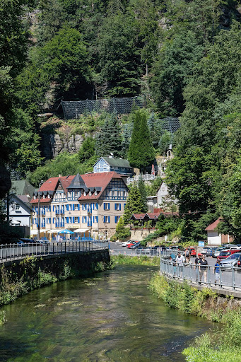 I stayed in a room on a higher floor with a nice view over the river/canal. The room itself was comfortable, with a lovely bathroom (seemed to have been recently renovated?) and a deep bath which I enjoyed after so much hiking! The room had a very comfortable bed, plenty of storage space and a small fridge which was useful too. The mini bar was OK in price and had nice things.|The young man in reception was very nice and helpful, explaining everything quite well despite our language differences.|The meal I had in the restaurant (chicken schnitzel and potato pancakes) was actually very nice; fresh, succulent and with good flavour. You do have to purchase your sides separately from the main, which was a little odd, but I guess makes sense if you don't want to waste food people don't eat. The waitresses were friendly also.|The breakfast was very nice, plenty of options to suit most people and bread fresh. You could also take a muesli bar and fruit and bottle of water, which is handy for later in the day.|The hotel is not a four star though, the services certainly do not match that rating. It is basic and nice enough, but not coming with features that would enhance. It lacks credible wifi, which is a key issue for many travellers these days. We rely on wifi to keep in touch with the world, plan our next maps for hiking, etc. There was wifi in some areas, but you had to be lucky to get online. My room did not have wifi, which was not pleasing at all. The TV was small, had only black and white channels and local only. Very poor reception. Ok, I would expect that for this area, being in middle of the rocks. |Now for the rest: I walked from the boat up to the hotel, which was an easy and interesting walk. There are numerous bridges across the river/canal, so if you want to walk on one side or the other and change your mind, no problem. |I did not find the rest of the town particularly engaging; the tourist office was friendly and helpful, so that was nice. the location is lovely and unique. You can easily travel to and from by boat, which is fun. But the markets taking up what seems the whole town spoiled it for me. I completely understand that people need to make a living and I have no doubt that if you needed some new clothes, cheap cigarettes, vodka or garden gnomes, then you were going to be in luck! It is a pity they do take up so much of the town. but it is what it is. |The Hotel Praha is happily located away from all those markets and an easy stroll to the start of hiking trails and also you can choose which bus stop to walk to, upstream or downstream. |If I had to stay in Hrensko again, you know, I would probably choose Hotel...