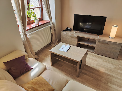 A well-equipped, smart and spacious apartment with a good selection of kitchen equipment in a beautiful historic building in the centre of Hradec Kralove's old town. Free parking is available immediately outside with a permit. The welcome at check-in was friendly and efficient, showing where to park and up to the apartment, and it was easy to extend for an extra day. A good laundry room with dryers is also available without additional charge.||||There are several bars and restaurants immediately below the apartments, including live music on Friday nights continuing until after midnight. This is beyond the property's control - with windows closed, the noise is limited, but with windows open (necessary in summer without air conditioning, although fan was provided), it was loud and made sleep difficult at first, so recommend bring ear-plugs especially if staying during the weekend. (Saturday night was quieter). Beds are also quite hard, although not unsually so from experience of Czech hotels.||||Would recommend and stay again, although with due caution...