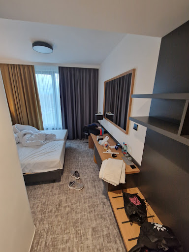 Pokoj: • Matrace byla poměrně tvrdá – to může někomu vyhovovat, ale pro nás spíše nepohodlná. • Pokoj překvapivě postrádal základní vybavení – chyběla televize, rychlovarná konvice, kávovar i skříň. • Koupelna byla naopak velmi pěkná, čistá a moderní. • Skvělé zatemnění pomocí blackout závěsů. • Odhlučnění oken je výborné, ale odhlučnění vnitřních prostor (dveří a stěn) absolutně nevyhovuje – je slyšet veškerý hluk z chodeb i sousedních pokojů.