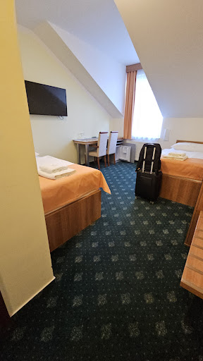 In summary, look elsewhere when stay in Hradec. ||Starting with check in, as mentioned in other reviews, they require full payment upon arrival.. - first time you need to raise your nose.. ||The room I got was in top floor, far behind compare to what you can see on web pictures. Small attic room with 2 separated beds, leaning by the wall - best remind me summer camps of my teenage.||||Second, again as mentioned here, the hotel is just next to main road, just at frequent bus stop. Not only that passing traffic will bother you, but mainly this is key spot for young people when coming home from their party. You will suffer with a terrible noise and scream all night, even in 3rd floor and closed windows you cant sleep at all. ||||Another point are the beds - actually you sleep on wooden bench covered with "slim line" mattress, no thicker than 10 cm - I was lucky to sleep alone in the room so I can pile two of them to have a bit comfy sleep||||I had some drink with me (no minibar in the room, only in the lobby). I realized that drinking glass are totally dirty and filthy.. ||||Next day I went for breakfast, this is really A JOKE - one plate with 10 slices of cheap ham, 5 slices of cheese and small pot of tomato/paprika - nothing else. The juice they serve is just chemical water so do not expect more than you´d get in very lousy pension or B&B||||Towels were not changed during my 2 nights stay, only upon of my request on reception. ||||To be fair, I have to say that in general hotel was relatively clean and is in a great location to walk to downtown - but not worth to take that as advantage to...