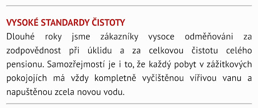 Read moreVýřivka na apartmánů podle nás neměla delší dobu vyměněnou vodu, a to kvůli lehce mazlavé vodě a plovoucí špínou na povrchu hladiny (viz foto). Netflix, který je uvedený v popisu apartmánů není ani na jedné z dvou televizí a je treba se přihlásit na VLASTNÍ učet. Po dotazu paní na recepci jsme dostali odpoveď "to nemáte vlastni?". Místnost se samotnou výřivkou není nijak ozvučená a po zapnutí výřivky není vůbec nic slyšet/rozumět. Takže televize s výřivkou postrádá smysl. V apartmánu bylo několik ovladačů, jejichž účel nám nikdo nevysvětlil, a opakované zkoušení po celém apartmánu bylo bezvýsledné. Přes noc je v apartmánů slyšet úplně všechno okolo, a proto naše první noc byla skoro beze spánku. Fén na vlasy nefungoval jak měl, kdyz byl zapnutý, tak se samovolně vypínal. Sprcha v apartmánu také nebyla úplně nejlepší. Je super, že máte na výběr „dešťovou hlavici“ nebo „klasickou“, ale musíte čekat +-30 sekund, než teče teplá voda. Několikrát se nám stalo, že teplota vody kolísala, což při pravidelném sprchování kvůli špinavé vířivce je otravné. Bohemia sekt na pokoji a po celý den přístup do kuchyně, kde máte k dispozici kafe a bábovku potěší, ale bohužel nezmění náš názor na tento pobyt. Za tuto cenu a hodnocení jsme si bohužel představovali něco jiného. Byl to opravdu GRAND zážitek. Parkování před hotelem je placené, což zcela chápu, každopádně jsem o tom nebyl nikde informován a bylo to "příjemné" překvapení hned na zacatku pobytu. Obsluha na hotelu je příjemná, snídaně jsou v pořádku, ale během snídaně se doplňuje pouze něco. Celý hotel působí jako...