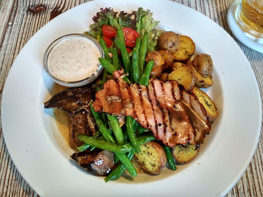 Dnes jsme zašli na Svatomartinské menu. Naprosto delikátní paštika s mandlemi jako předkrm, dále konfitovaná husa, zelí, bramborové a houskové knedlíky. Maso bylo šťavnaté, výborně ochucené, porce doslova obří. Zelí (červené i bílé) přesně podle mého gusta, sladkokyselé, ne příliš zahušťěné. Vše se perfektně chuťově sešlo. Servis byl skvělý!