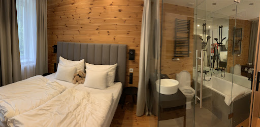 My friend and I came just for one night, a ladies' getaway. Overall, I loved the place, the interiors were lovely with lots of wood and glass, perfect for the mountain environment. Although we booked a room that reportedly had twin beds, we were only given the option of a queen bed with a couch-bed, meaning that one of us had to suffer. I find it's always a challenge to find a place for 2 people who don't want to sleep together, but don't want to take separate rooms. For that reason I would say this place is great if you are with a family or a couple. The bathrooms, while lovely, were quite small, and there isn't a lot of space to store your things there. As older women, the wellness area was too small and too full of kids and groups of younger people with Jagermeister bottles ready to party, for us to really enjoy it. It just wasn't very peaceful. There is the option to rent the private sauna and Jacuzzi on the 6th, which we probably should have done. But if you want a wellness area for the pool, I wouldn't recommend it; the pool is really too small if you really want to swim. I should point out that we went one of the last weekends of summer before school started, which might be why it was so crowded with kids. That said, the service was phenomenal. I really had a sense that the hotel staff was a well-oiled machine. They were friendly and very helpful, and they all jumped in to help each other if there was a problem. For example, I could see that they were working hard to ensure that the breakfast was fully stocked at all times. I came up to ask one of the staff for a sharp knife and another colleague who was listening just went and grabbed one for me. I also found that the food was really good and great...