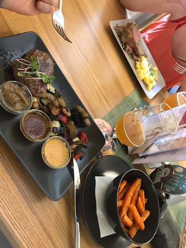 Read moreDostali jsme poukaz na wellness pobyt a prakticky vše bylo super. Pokoj- hezký, jedonoduchý, příjemná a čistá postel. Koupelna také v pořádku, jen s vodou byl menší problém (reagování na změnu teploty bylo náhodné a člověk se při přepnutí na chladnější teplotu i opařil a naopak). A díky návštěvě během léta zde bylo nesnesitelné horko které ani malý větrák na pokoji nezachránil. Člověk by očekával u oceňováného hotelu v tomto kraji klimatizaci, nicméně zde není. "Rekreační zázemí"-Pára i sauna byla super, jen návod na saunu by byl užitečnější před saunou a né na druhé straně u bazénu. A bazén vypadá z fotek o něco větší ale na rekreaci iděální, ale plavecké tréninky neočekávejte. No a to nejlepší je výřivka. Ta je celkem příjemná až na ovládání které vypadá spíš nefunkční na první pohled (poslední den pobytu opravdu jedno z tlačítek nefungovalo). Masáže jsme bohužel díky cestování po okolí nestihli. Restaurace- ta je obrovský hod mincí. Může to být nejlepší a zároveň nejhorší část celého hotelu. Na polopenzi zde máte určené menu k večeři a švédské stoly ke snídani, na tom je vše vpořádku a s včasným nahlášením na recepci lze i změnit večeři když zrovna servírují něco co nemusíte. Ale u obědů nastává onen hod mincí (i večeře se jednou povedla a jednou už tolik ne). První oběd steak (původně zájem o striploin který neměli, takže nakonec rump steak) byl výborný i s dodatečnou přílohou batátových hranolků. Obsluha několikrát zkontrolovala že je vše v pořádku a i přesto že jsme na oběd došli později a bylo tu pár dalších stolů tak se nám věnovali. Druhý den se jednalo o uzená žebra která mi moc nesedla ale to může být osobní problém takže to neberu jako chybu, ale absolutní nezájem personálu o nás už ano. Seděli jsme zde sami a servírky okolo nás prošli asi 5x a i přes výměnu pohledů a práznou sklenici posunutou na kraj stolu jsem se nabídky na další pití nedočkal. I přes mastnotu žeber jsem nebyl schopen poslední žebro a topinku dojíst jak sucho jsem měl v krku. Opravdu jsem odmítal jít objednat další pití sám na bar potom co zde servírky měli dost času a možností. (Chápu že nejspíše obsluhovali i venkovní terasu ale pro info jsem si schválně zapamatoval že se zde po našem odchodu nacházela jedna čtyř člená rodina, jeden pár a jeden samotář, tudíž si myslím že zkontrolovat jediné hosty uvnitř restaurace nebyl nadliský úkol). I přes tuto jednu nepříjemnost jsme si pobyt velice užili a zbytek personálu byl velice milý, hlavně slečna na recepci během...
