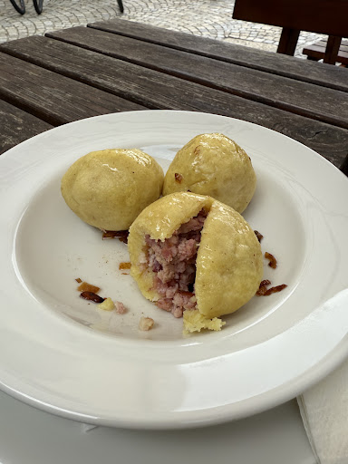 Místo jsme si vybrali podle recenzí, které chválily obsluhu, místo i jídlo. Po příchodu jsme si sedli ke stolu a čekali na jídelní lístek. Po 5 minutách čekání jsme trochu znejistěli, zda je restaurace obsluhovaná - za barem se pohybovali nejméně dva lidé z personálu, ale o nás zájem nejevili. Po dalších 5 minutách jsme se jejich směrem začali významně dívat a nonverbálně (a vlastně i verbálně) signalizovat, že stojíme o jejich pozornost. Po 15 minutách (které však pocitově byly jako hodina), jsme se dočkali. Byli jsme rozhodnuti odejít a udělit 1*, nicméně od této chvíle to už bylo jen lepší. Točený Bernard včetně nealka - super! Hovězí vývar sice chuťově nevýrazný, ale poměr kvalita cena to vynahradil. Játra s rýží chuťově vyvážené a chutné (snad jen o trochu více soli by jim slušelo, ale to si každý může dosolit dle chuti - naopak by to bylo horší). Knedlíky plněné uzeným masem - naprosto boží, poctivé a tak naplněné, že jsem to snad nikdy před tím nezažil! No a n doporučení - jeden borůvkový knedlík na závěr - spousta borůvek uvnitř i na povrchu, decentně dochucený tvarohem a cukrem, omaštěný máslem. Nebýt pár míst, kde bylo těsto trošku sušší (nedokonale napařené), bylo by to jasných 10/10, takhle 8,5/10, nicméně i tak minimálně o 3 bodíky lepší, než většina výletních restaurací. Tedy původní záměr 1* měním, pro dnešek dávám 3* a rozhodně tomuto místu dám ještě další šanci. Když spraví ten první dojem a pár detailů, mohlo by to jít až na plných 5* -...