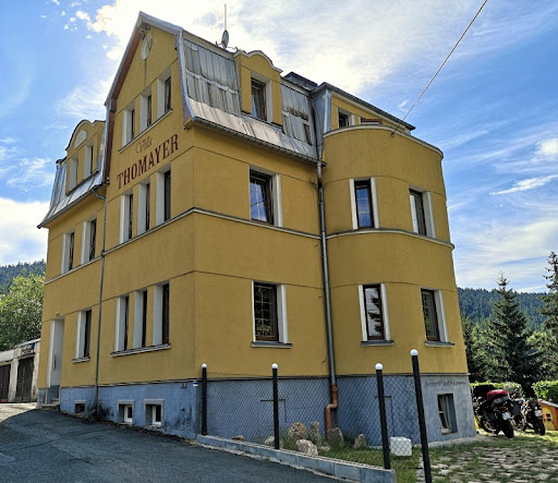 Read moreHotel Panorama v Jáchymově se na svých webových stránkách (ve stylu počátků internetu) chlubí nádhernými výhledy na město v údolí. Pohled z terasy je opravdu hezký, ale umístění hotelu na vrcholu velmi prudkého stoupání zároveň nutně odrazuje hosty, kteří by chtěli restauraci navštívit pěšky. Kategorie "hotel" zde neodpovídá, je zde sice recepční pult, ale bez recepčního, spíš se jedná o rodinný penzion, jehož provoz zajišťují majitelé. Cenově je výrazně dražší, než většina penzionů v okolí, ovšem mnohem levnější než vyhlášené lázeňské domy. Cenu za 5 denní pobyt stanovil majitel emailem, avšak skutečnost, že nebudeme ubytováni v hlavní budově, ale v nedaleké vile Thomayer, jsme se dozvěděli až po příjezdu. To však příliš nevadilo, obě budovy jsou solidní starší stavby. Majitel kromě jiného sbírá starý nábytek a další historické předměty, kterými jsou obě budovy zaplněny. V jídelně jsou u stropu zavěšeny historické sáně, které tahalo koňské spřežení. Dokonce hned dva zachovalé exempláře si zaslouží pozornost svým provedením; bohužel nápad zvýraznit obrys světelným řetězem s LED žárovkami degraduje pozoruhodnou památku na pouťovou atrakci. Pokoj, ve kterém jsme byli ubytováni byl pro nenáročné nocování dostatečný. Snídaně formou bufetu byly asi nejlepší položkou tohoto pobytu, poslední den, kdy jsme zde byli již sami, nám paní majitelka udělala velmi chutná míchaná vajíčka. Naopak jediná objednaná večeře z jídelního lístku nás od dalšího stravování zde zcela odradila - velmi amatérské provedení za cenu o mnoho vyšší, než stejná jídla v restauracích na Božím Daru nebo na lázeňské kolonádě ve Františkových Lázních. Nad touto recenzí jsem dlouho váhal, hodnocení je velmi subjektivní. Na jedné straně vah podivně vybavený hotel, který hotelem není, jisté problémy při komunikaci, kuchyně bez skutečného kuchaře a na druhé straně přátelské jednání a opravdu upřímné úsilí majitele a jeho maminky o to, aby hosté byli spokojeni. Právě pro toto jednání a skutečnost, že se jedná o solidní objekt, který se majitelé snaží vylepšovat, dávám (s ne příliš čistým svědomím) 4 hvězdičky z 5 a přeji majitelům...