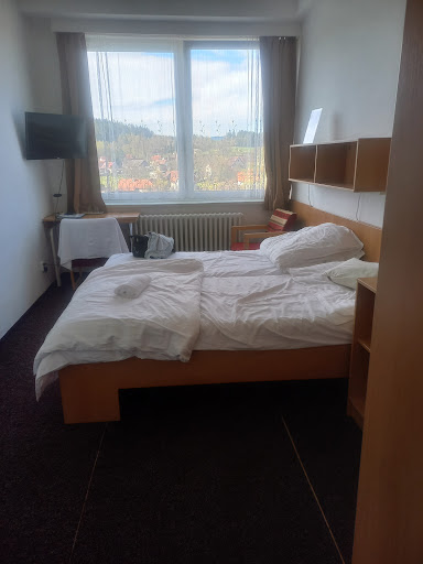 ve všední den 5.00 -8.30 neteče voda (údajně spotřebovává kravín) , leč pro ranní hygienu hostů je to dost velký nedostatek 5.00-7.00 ráno drnčí kompresor bioplynky, zaručený budíček obědy a večeře jako v závodce, zasytí ale nenadchne, snídaňový bufet stejný, v 8.00 již téměř vyjedený, hotel se spíše specializuje na hromadné zájezdy důchodců, nebo léčebné pobyty postižených. spíše než hotel , lepší ubytovna není lednička, ani na pokoji ani v dosahu pobyt se platí dopředu, ? HOTOVĚ!! (nutno mít dostatečnou hotovost - v době platebních karet? , pokud musíte pobyt zkrátit z jakého koliv důvodu, nelze peníze vrátit. -úschova kol po pěti schodech, klíč v patře na recepci wifi připojení na pokoji vypadává ( za 12min 8x) tak na nějaké vyřizování e-mailů zapomeňte, a jděte na recepci nebo na terasu , tam funguje dobře. (recenzi berte pouze jako upozornění, mně je to již jedno-příště...