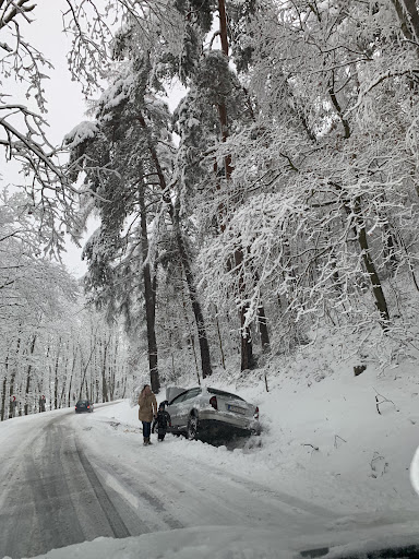 Cesta byla v horším stavu než večer před tím, tálo a podklad byl led. Čili auto se zabořilo a začalo hrabat. Podařilo se nám nabrat do kýble krmení pro bizony a daňky a s jeho pomocí jsme auto rozkývali a mně se podařilo na ledu proklouzat smyky nahoru k “rezortu”. Tam ovšem nebylo kde zastavit. Celá ráda jsem se otočila do zákazu vjezdu a jak bylo řečeno, strávili jsme den v Kašperských horách a v Prachaticích. “Chce se ti do toho wellness?” podívali jsme se na sebe večer? “Radši si půjdeme lehnout.” Takže tak. Krásná příroda Šumavy? Že bychom sem příště přijeli pod stan? No nevím - je to taková ta česko sudetská tragédie, která se snaží kupčit s “Karlem IV” a ”žatonosnými řekami” celá ta osada je taková loupežnická, dole jsou trosky dříve prosperujícího sídla a zbytek tvoří depka nezvládnutých klimatických změn. Takže tak -...