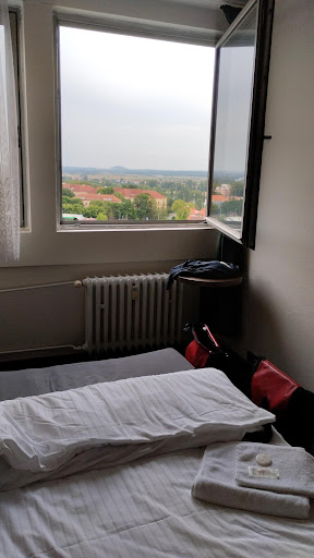 Read moreJedním slovem KATASTROFA !!! Budova je rozdělena na ubytovnu, hotel a byty pro "asi" sociálně slabé občany. Úklid a pořádek tomu odpovídá. Špína, prach, odpadky a nedopalky jak uvnitř, tak také venku kolem hotelu. Nefunkční malá televize, vypadávající wi-fi, chybějící ledničky, žadné odkládací plochy a věšáky. Hrozné koupelny s toaletou, kam se člověk ani pořádně nevejde. V hotelové části jsou koupelny lepší, protože jsou opraveny. Teď přes léto je na pokojích strašné vedro. Větrat moc nejde, protože nejdou otevřít okna. Když otevřít jdou, tak je průvan a všechno bouchá. Navíc okna a dveře netěsní, takže z chodby do pokoje pronikají různé "pachy a smrady" z vaření a cigaretový kouř z nižších pater. I když je v celé budově zákaz kouření, tak zde plno ubytovaných kouří. Na chodbě a i v pokojích. V jednom pokoji jsem dokonce viděl propálenou kuchyňskou desku od přenosného vařiče. Není zde žádný požární žebřík nebo schodiště, nejsou zde detektory kouře, alarmy a ani hydranty. Pouze 2 hasící přístroje na každé patro. Jelikož je tu 11 pater, tak radši nechci ani pomyslet na to, co by se dělo, kdyby hořelo !!! Dále postele a matrace. Většina je asi nových ale některé matrace už jsou proležené. To ale pořád není to nejhorší. Nejhorší je to, že v posteli nespíte sami. ANO !!! V horních patrech hotelu obývají postele a pokoje ŠTĚNICE, v nižších patrech ŠVÁBI !!! Není to pouze jeden případ nebo pokoj, ale doopravdy se jedná o celá patra. Mám to potvrzeno od více hostů z dalších pokojů. Když jsem na toto upozorňoval obsluhu recepce, tak mi bylo odpovězeno, že jejich údržbář pokoj "vystříká" a vše bude v pořádku. Paní zřejmě rozumí deratizační práci. Údržbář si zřejmě vezme hasák a bude je jednotlivě mlátit hlava nehlava. Samozřejmě, že se všichni brouci rozutekli po všech okolních pokojích. Takže, jak tady napsal pan Szabo přede mnou "ale aspoň nejste sami" Nebezpečí nehrozí pouze uvnitř hotelu ale také venku. Nikdy nevíte co vám přistane na hlavě. V lepším případě zbytky jídla, nedopalky nebo odpadky, v tom horším betonové kusy odpadávající z budovy. Aspoň 1 hvězdičku dávám za hezký výhled na město a občas...