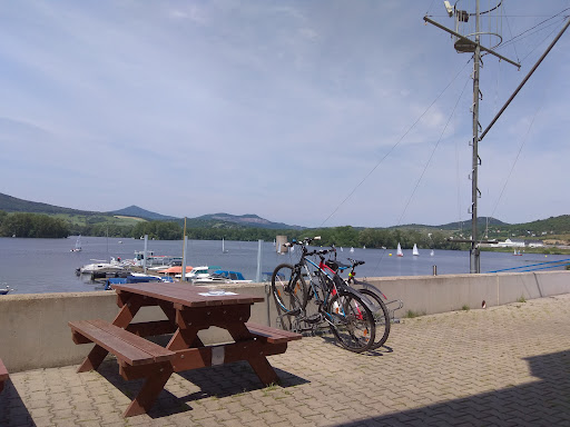 Součástí resortu je příjemná restaurace s rozlehlou zahrádkou na dřevěných trámech. Po horkém dni a dvaceti nachozených kilometrech bylo posezení na ní úžasným zážitkem. Objednal jsem si malé pivo a kafe, sedl si co nejblíže ke kotvišti a pozoroval jsem slunce zapadající za dominantu dvojhřebenu Lovoš. Personál byl příjemný a milý a moc mi tu chutnalo, spíše bylo náročné zvednout se a dojít těch pár kilometrů na Lovosické nádraží.